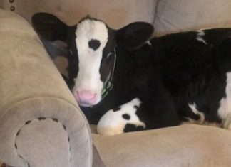 Miega ant sofos, vizgina uodegą: jautukas, išaugintas šunų, save laiko šuniuku
