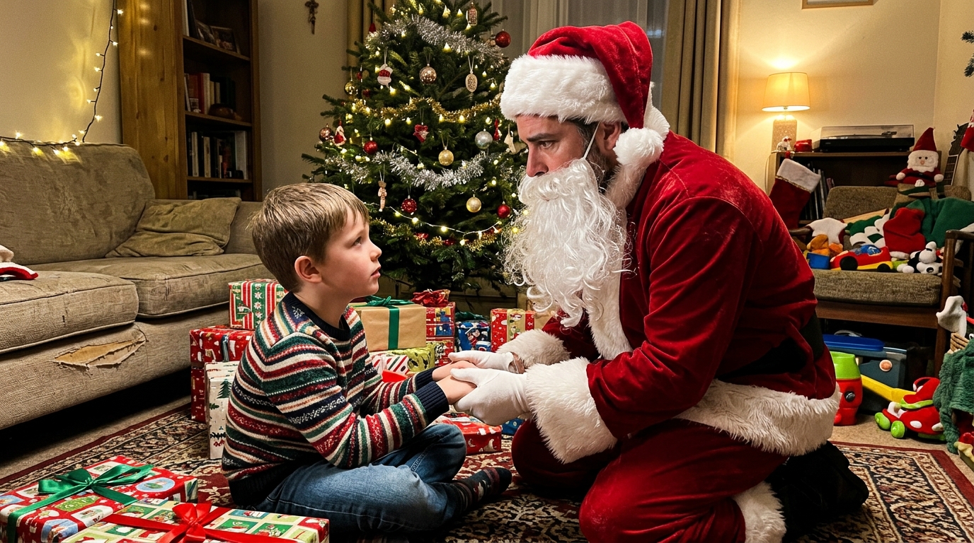Paprašiau laiko pagalvoti. Jis grįžo prie Kalėdų Senelio vaidmens, atsisveikino su sūnumi ir išėjo. Bet jo kontaktas liko mano. Per kelias ateinančias dienas daug kalbėjomės. Tuomet supratau: sūnus turėtų žinoti.