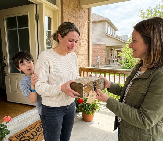 Niurzlus kaimynas metų metus šaukė ant mano vaikų — kai jo nebeliko, jo dukra atėjo su užrakinta dėžute, skirtai mano sūnui.