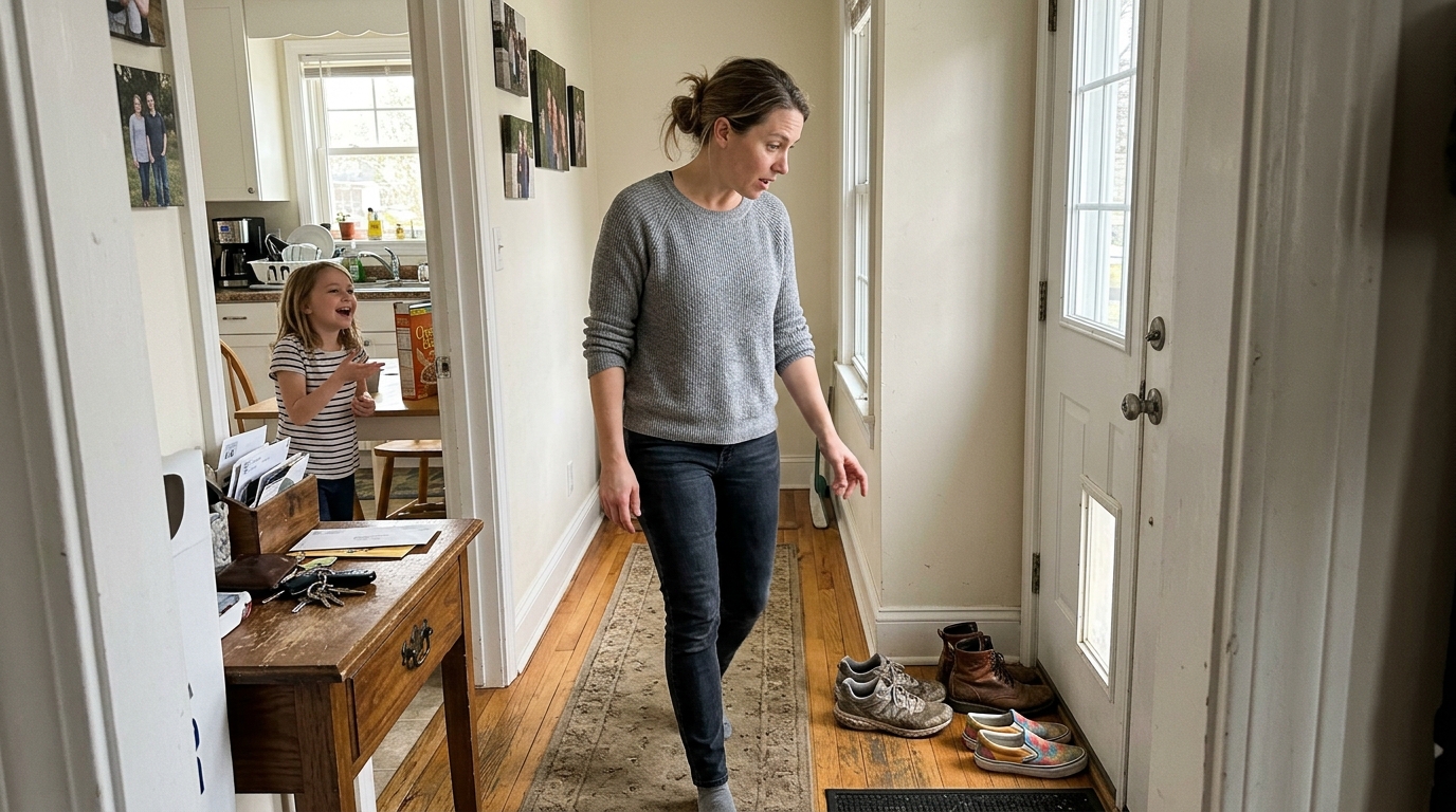 Juodos aukštakulnės su plonomis juostelėmis, tvarkingai padėtos lyg ten priklausytų. Mano vyras Martinas neapkęsdavo batų namuose — svečiai visada nusiaudavo juos prie durų. Tai reiškė, kad tas, kam jie priklausė, labai patogiai jautėsi čia. Per daug patogiai.